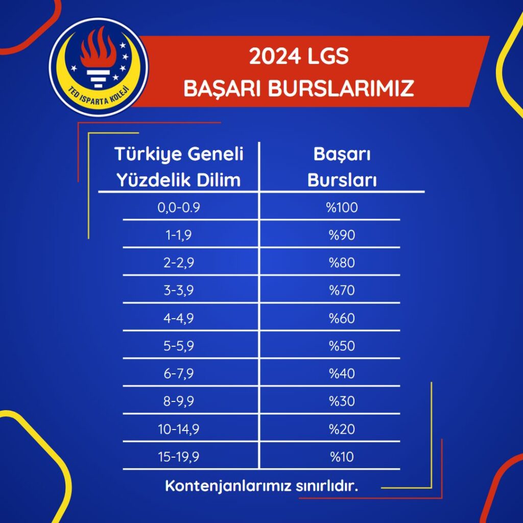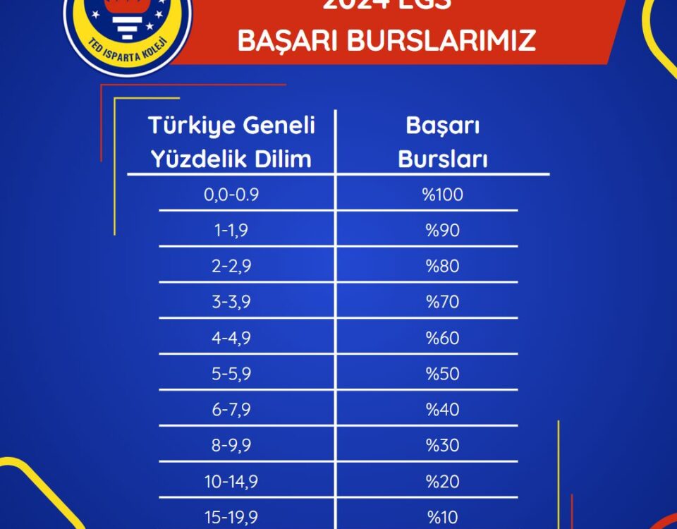 LGS 2024 sonuçlarına göre %0-%19,9 Türkiye Geneli yüzdelik dilimi arasında yer alan öğrencilere %100-%10 arasında başarı bursu ile TED’li olma ayrıcalığı! Sınırlı kontenjanlarımızdan yararlanmak için sizleri […]