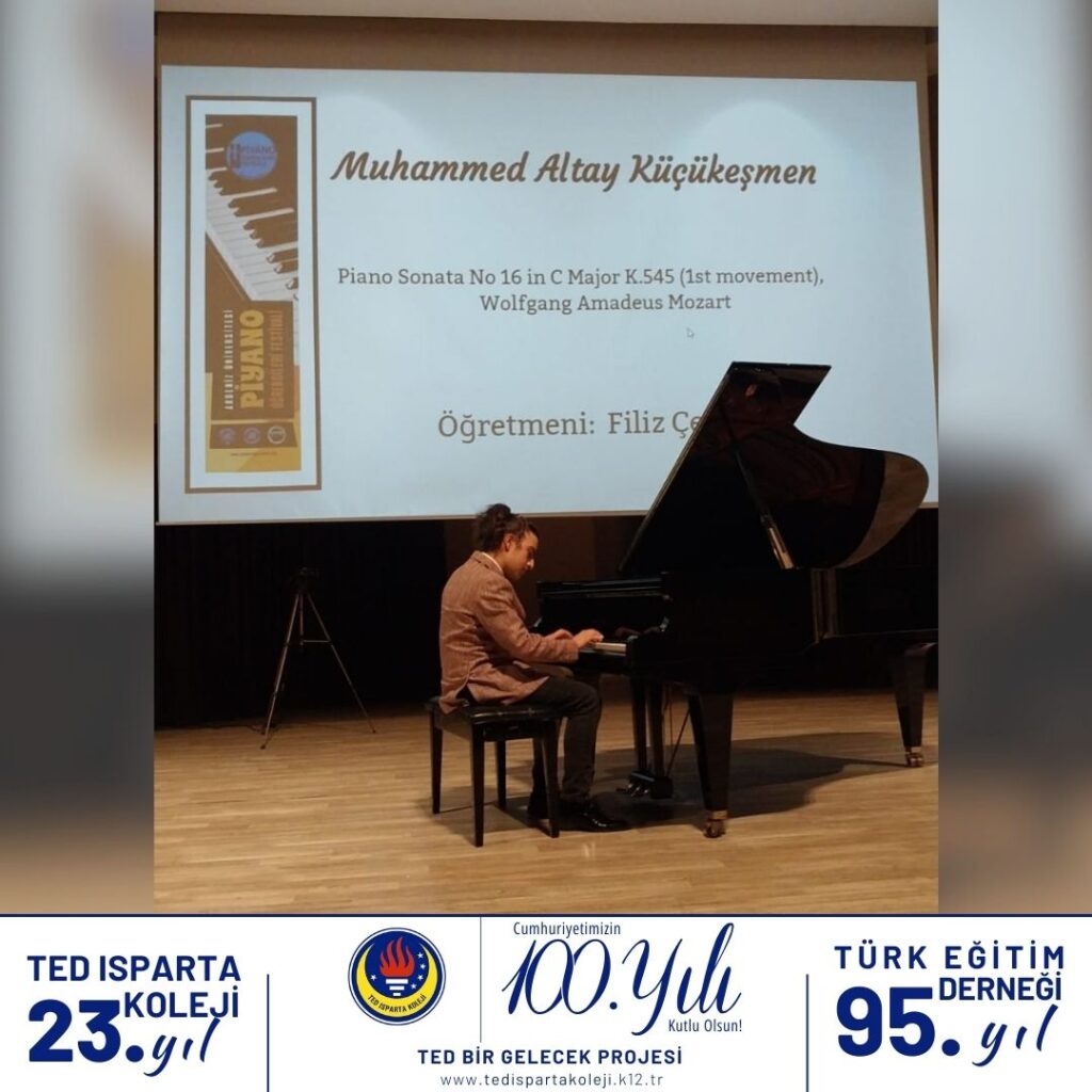 9.sınıf öğrencimiz Muhammed Altay KÜÇÜKEŞMEN, 23-24 Mayıs 2024 tarihlerinde Antalya’da düzenlenen 5. Piyano Öğrencileri Festivalinde sahne alarak bizleri onurlandırdı. Piyano eğitmeni Filiz ÇENİT’in rehberliğinde çalışarak Wolfgang […]