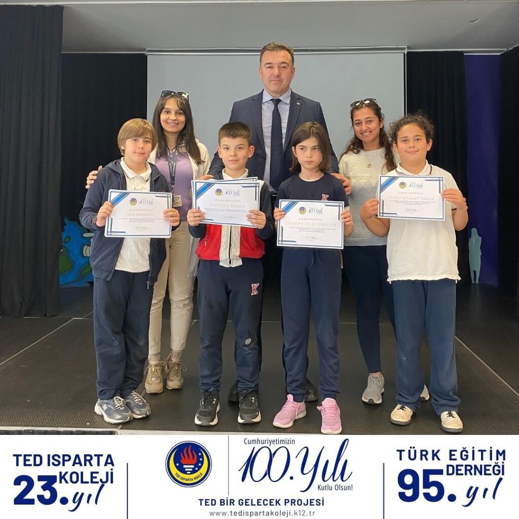 TED Isparta Koleji İlkokulu öğrencileri, ulusal ve uluslararası sınavlarda gösterdiği üstün başarıyla okulumuzu Türkiye ve Dünya finallerine temsil etmeye hazırlanıyor. Başarı belgelerini İlkokul Müdürümüz Sayın Hüseyin Avni Şataf’ın elinden alan öğrencilerimiz ‘Türkiye ve Dünya finallerinde biz de varız’ dedi. Öğrencilerimizi ve öğretmenlerimizi kutluyoruz.