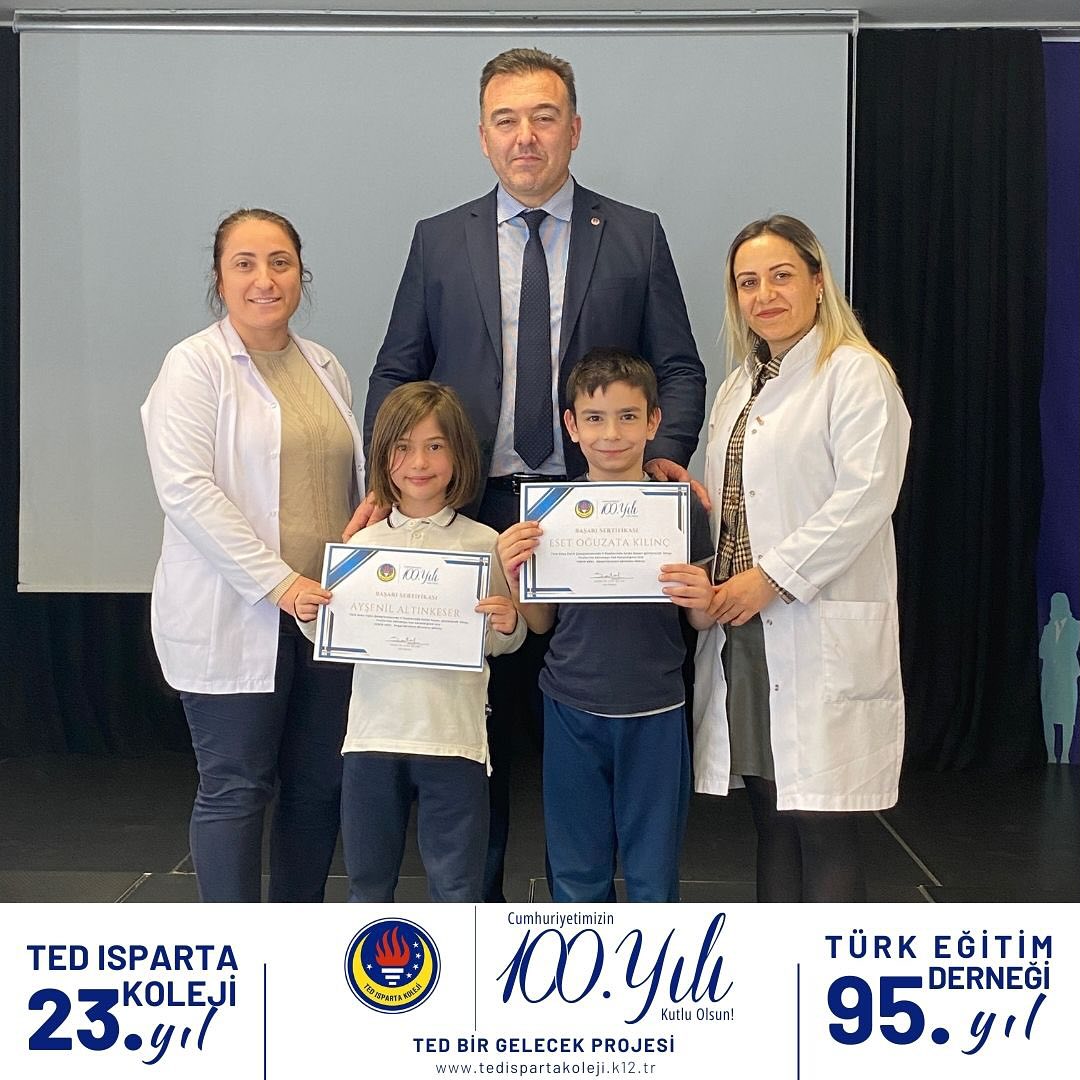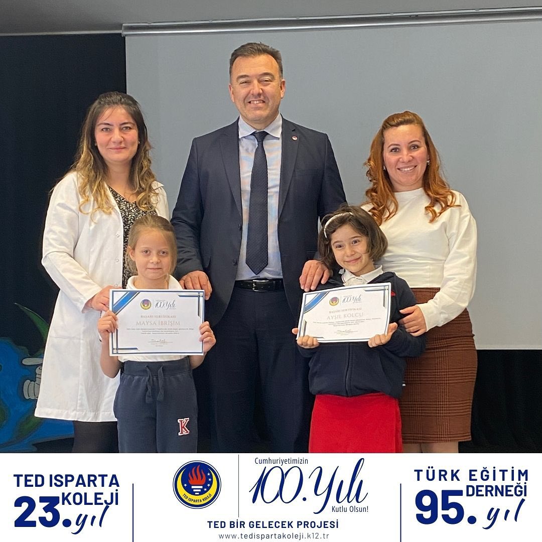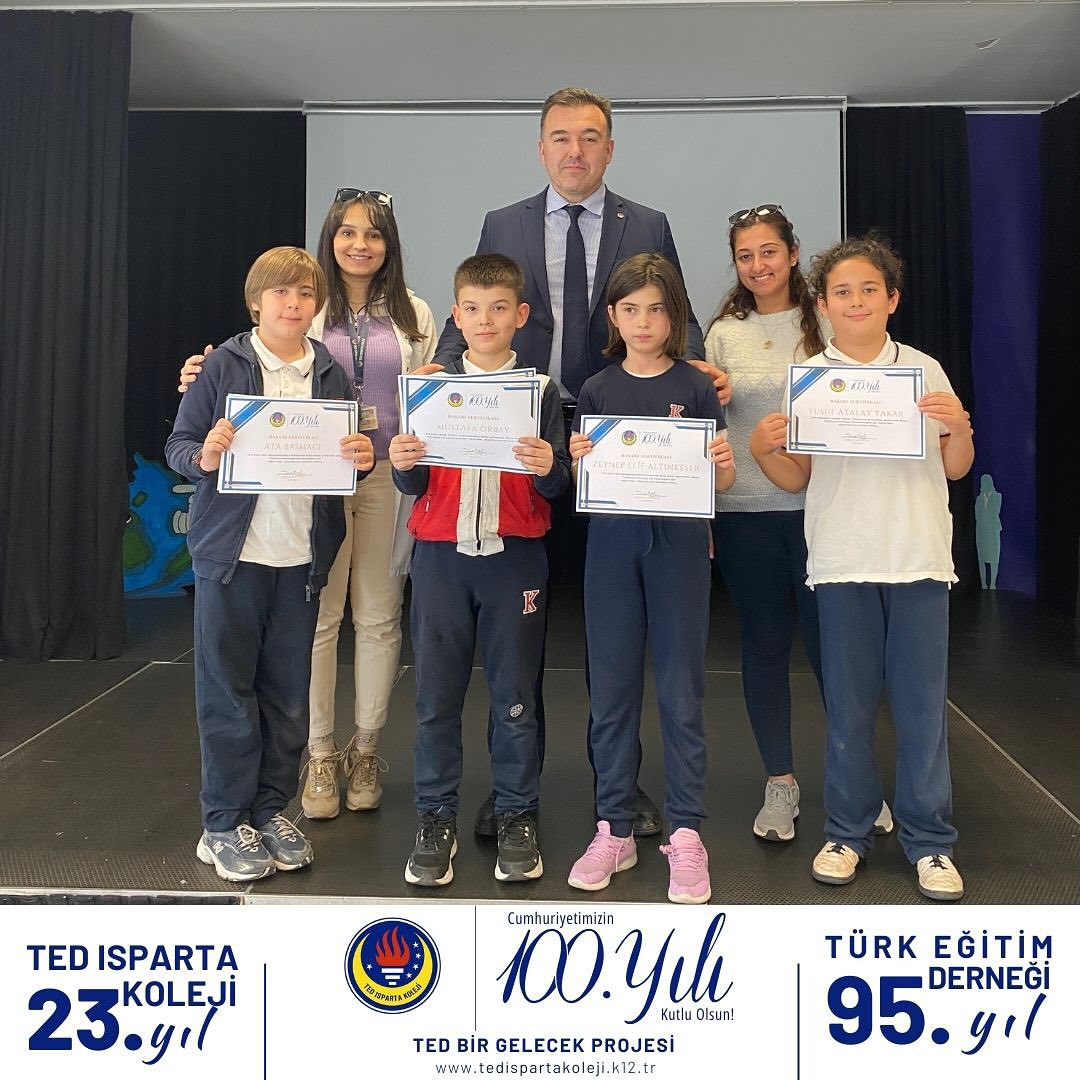TED Isparta Koleji İlkokulu öğrencileri, ulusal ve uluslararası sınavlarda gösterdiği üstün başarıyla okulumuzu Türkiye ve Dünya finallerine temsil etmeye hazırlanıyor. Başarı belgelerini İlkokul Müdürümüz Sayın Hüseyin Avni Şataf’ın elinden alan öğrencilerimiz ‘Türkiye ve Dünya finallerinde biz de varız’ dedi. Öğrencilerimizi ve öğretmenlerimizi kutluyoruz.