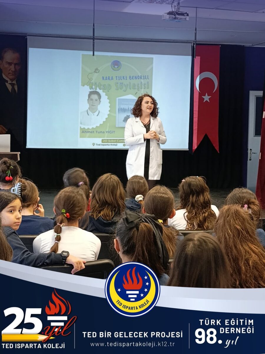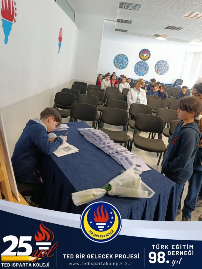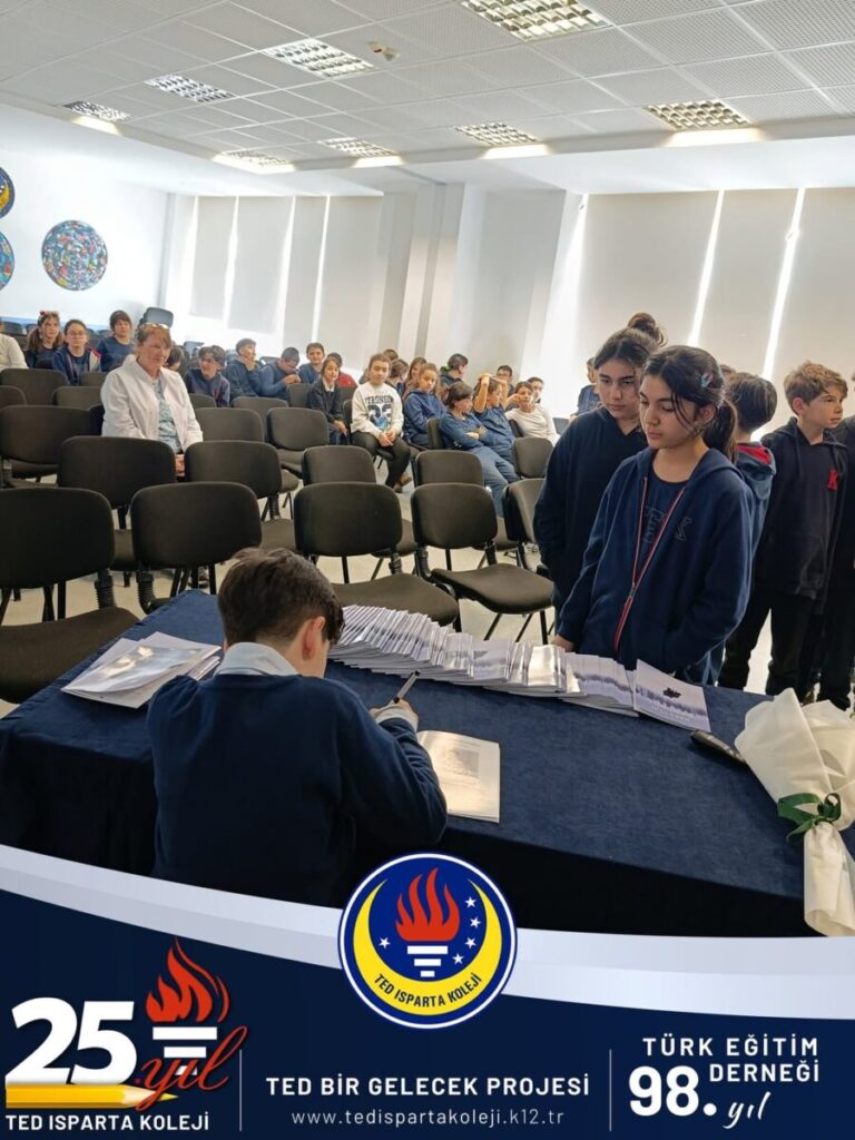 Genç yazarımız, kitabının yazım sürecini, karakterlerin ortaya çıkış hikâyesini ve hayal dünyasını arkadaşlarıyla paylaşmak amacıyla okulumuzda bir söyleşi gerçekleştirdi. Söyleşi boyunca öğrencilerimiz büyük bir ilgiyle dinleyici olurken, merak ettikleri soruları sorma fırsatı buldu.