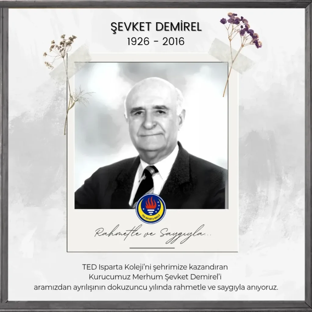 TED Isparta Koleji’ni şehrimize kazandıran Kurucumuz Merhum Şevket Demirel’i aramızdan ayrılışının dokuzuncu yılında rahmetle ve saygıyla anıyoruz.