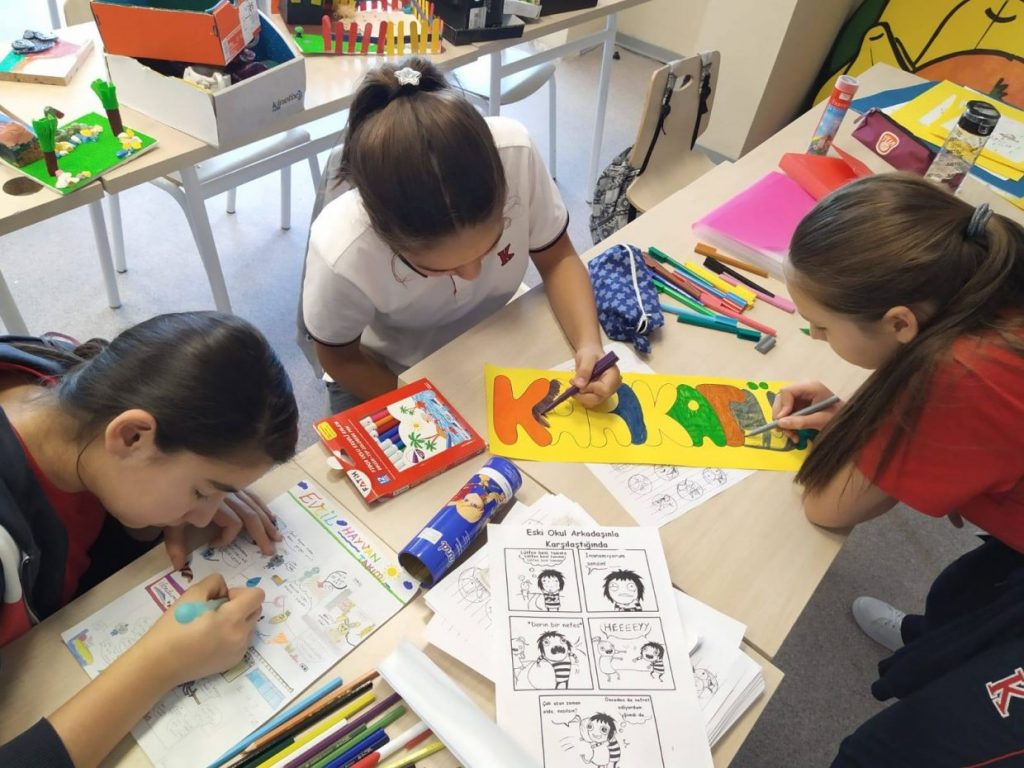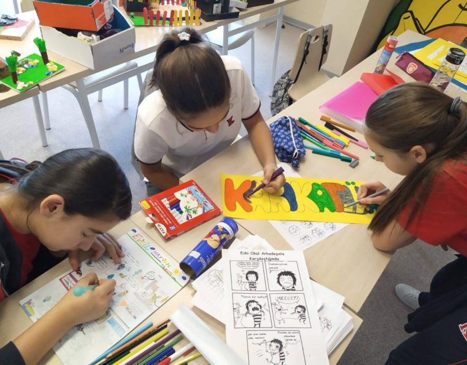 Ortaokul Karikatür ve Çizgi Roman Kulübü olarak hazırlamış olduğumuz kendi özgün çizim karakterlerimizin yer aldığı panomuzu hazırladık. Kulüp öğrencileri ile “Her Ayın Öğretmeni” temalı çizimlerini, öğretmenlerine […]
