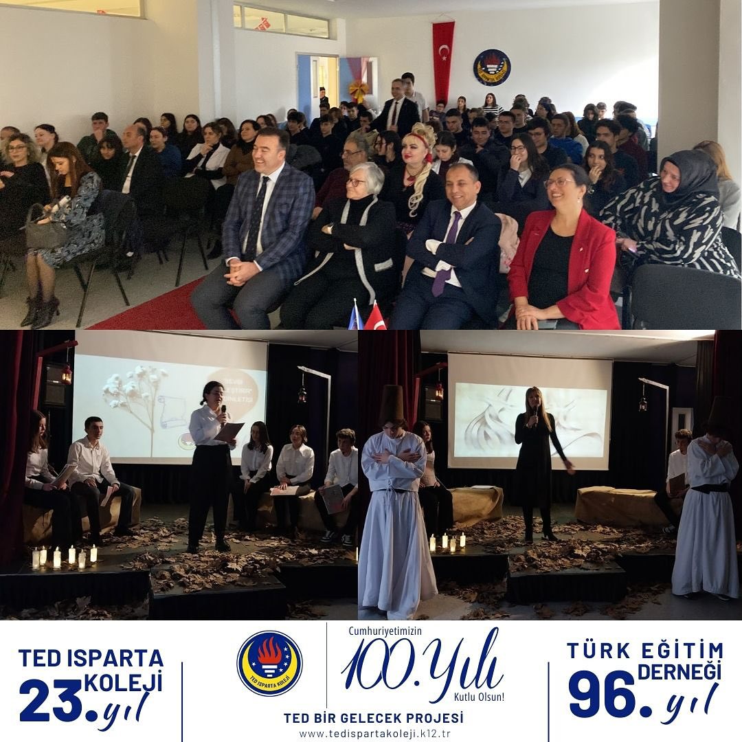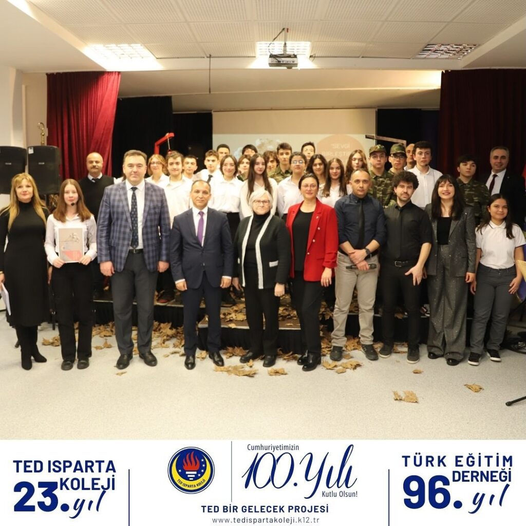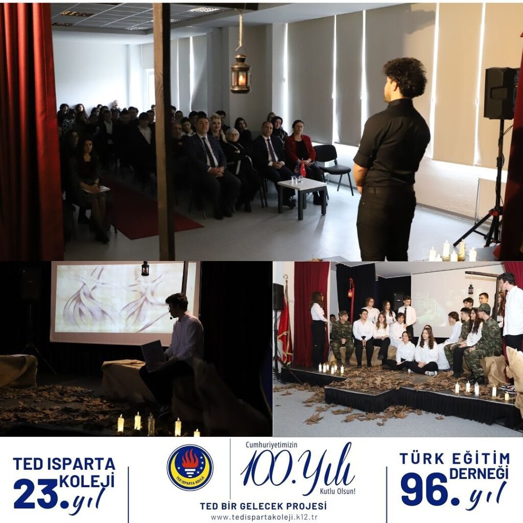 TED Isparta Koleji Lisesi öğretmen ve öğrencileri “Sevgi Birleştirir” temalı şiir dinletisinde muhteşem bir şiir şöleni gerçekleştirdi. Mehlika Sultan’a aşık 7 gençle başlayan dinletimiz palamut sevgisi, baba sevgisi, anne sevgisi, sevgiliye olan sevgi, dost sevgisi , insan sevgisi ve vatan sevgisi temaları üzerine edebiyatımızın seçkin örneklerini seslendiren öğrencilerimiz yorumlarıyla dinleyicileri şiirle buluşturdu. Müzik, drama ve filmlerle zenginleştirdiğimiz şiir dinletimize katılarak bizleri onurlandıran Isparta Milli Eğitim Müdürümüz Sayın Erhan Baydur’un da Nurullah Genç’in “Can Kuşum” isimli şiirini yorumlamasıyla programımız sona erdi.