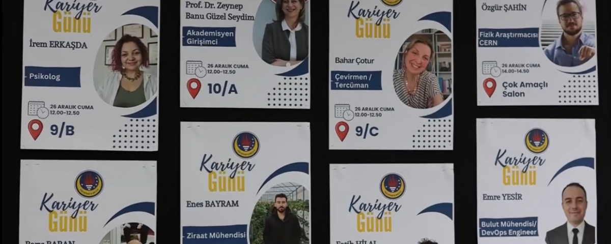 PDR Zümresi ve Okul Yönetimi iş birliğiyle gerçekleştirilen bu organizasyonda; pilottan doktora, insan kaynakları direktöründen avukata, CERN’de görev yapan kıdemli fizik araştırmacısından siber güvenlik uzmanına, bulut ve veri işleme alanında çalışan mühendislere kadar pek çok farklı meslek grubu tanıtıldı. Aynı zamanda Türkiye’nin önde gelen şirketlerinde görev yapan beyaz yaka profesyoneller de öğrencilerimizle buluştu.