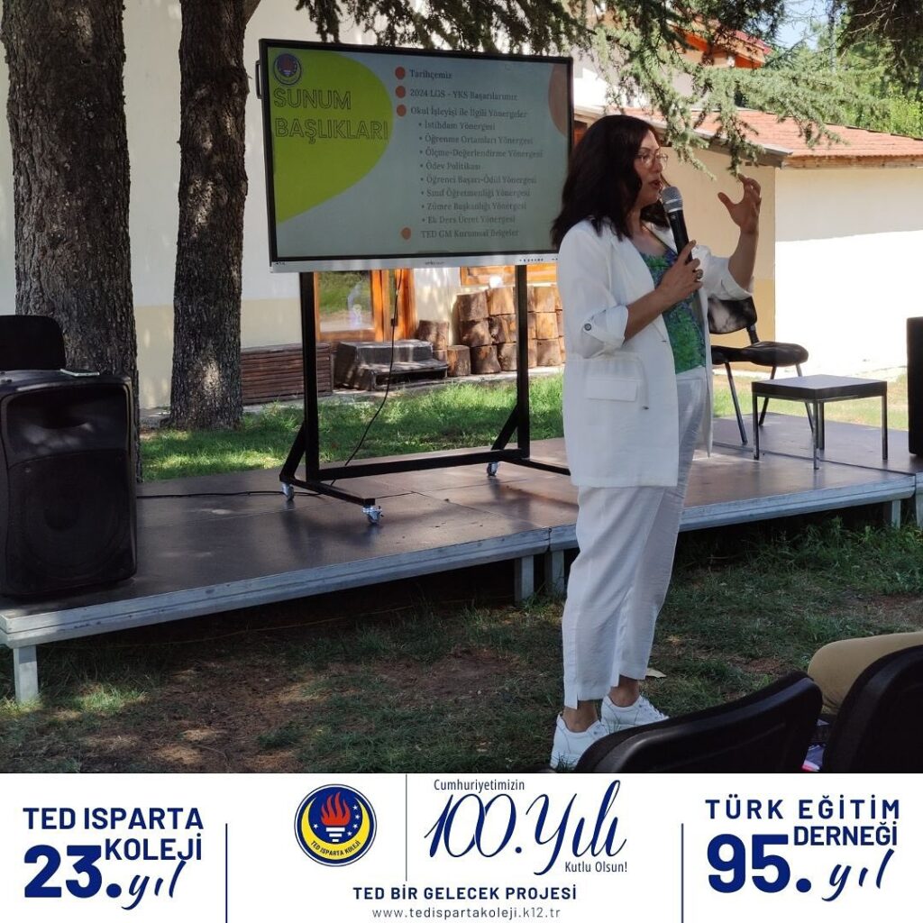 Tüm öğretmenlerimizin katıldığı motivasyon kahvaltısının ardından Kurucu Temsilcimiz Şule Yurcu ve Lise Müdürümüz Gülin Özkan 2024-2025 Eğitim Öğretim yılı toplantısında açılış konuşması yaptılar. Aramıza yeni katılan öğretmenlerimize TED’in meşalesini simgeleyen yaka rozetleri takdim edildi.
