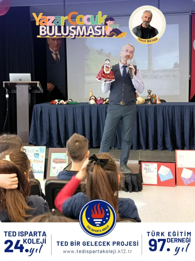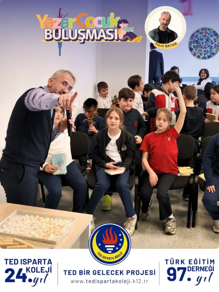 TED Isparta Koleji, 17 Kasım 2025 Pazartesi günü unutulmaz bir edebiyat etkinliğine ev sahipliği yaptı. Çocuk edebiyatının sevilen isimlerinden Yücel Bayar, okulumuza gelerek ilkokul 3. ve 4. sınıf öğrencilerimizle keyifli ve öğretici bir buluşma gerçekleştirdi.