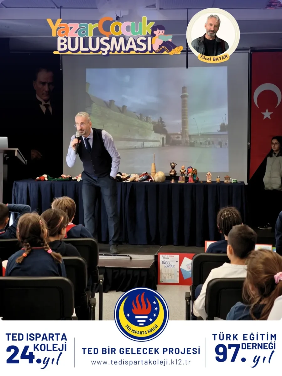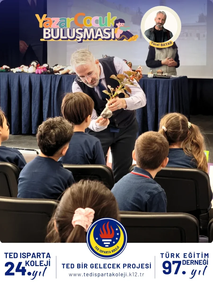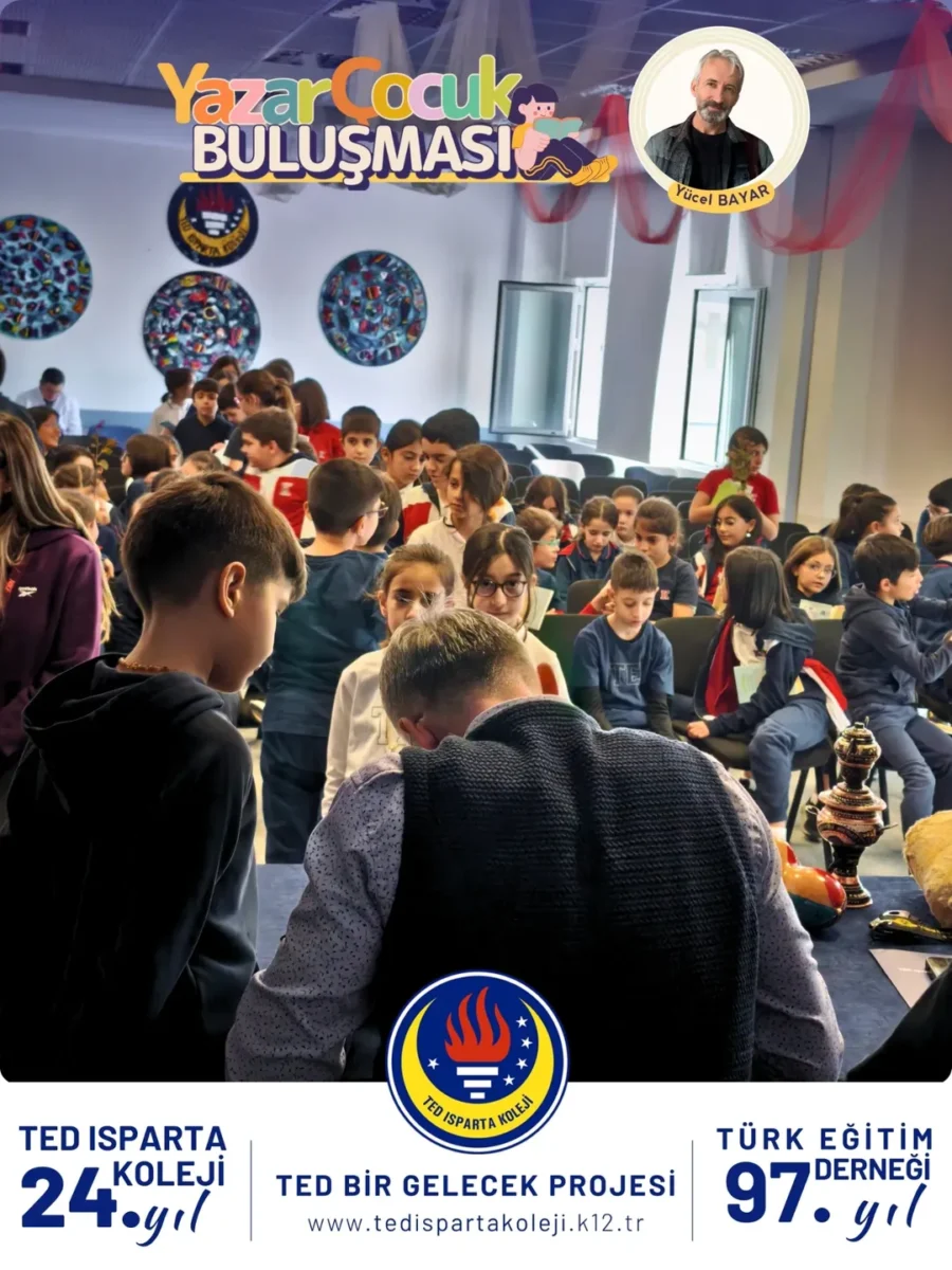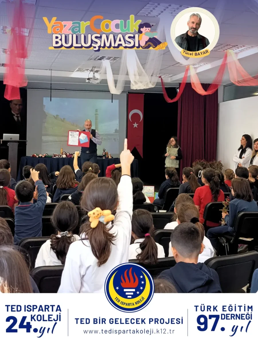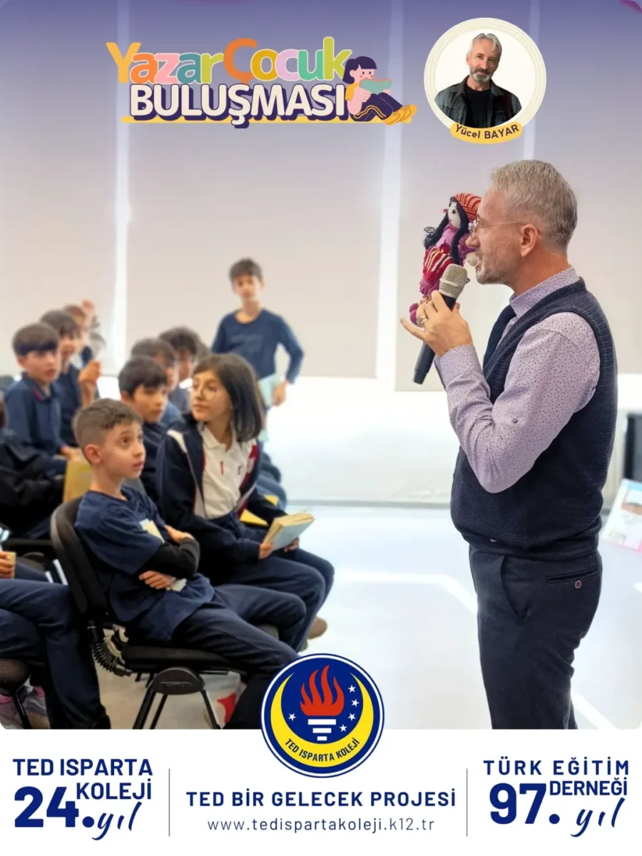 TED Isparta Koleji, 17 Kasım 2025 Pazartesi günü unutulmaz bir edebiyat etkinliğine ev sahipliği yaptı. Çocuk edebiyatının sevilen isimlerinden Yücel Bayar, okulumuza gelerek ilkokul 3. ve 4. sınıf öğrencilerimizle keyifli ve öğretici bir buluşma gerçekleştirdi.